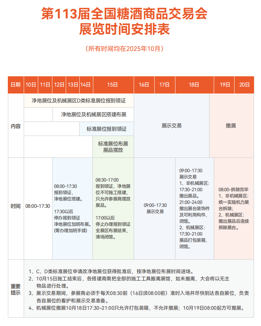 2025南京秋糖会倒计时:最新综合信息指南助您高效参展参观发表时间:2025-09-26 11:15 1-1. 展览时间安排表