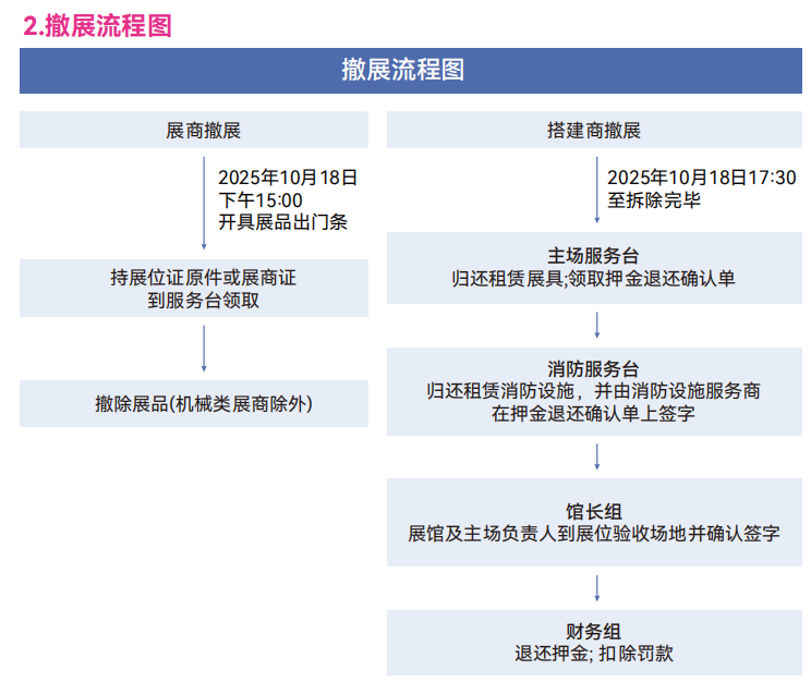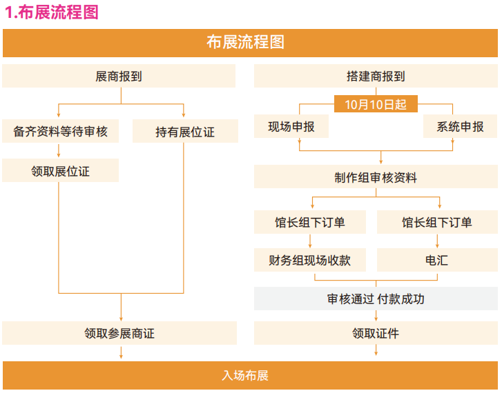 4-5.特装展位设计及搭建 1、图纸资料申报相关说明 所有图纸要求清晰完整,并在图纸明显位置注明展位号,清晰详尽的电路图。注明用电性质(机械设备用电和照明用电要单独电路开关控制,不允许混装)、总功率、总开关和各级保护开关的额定电流值和电压等(220V/380V),注明所采用线缆型号和敷设方式。 电路图注明展位的总配电箱位置:注明灯具等电器的种类、功率和安装位置。上述所有申报资料必须填写清晰完整并加盖公章,通过全国糖酒会官方网站“主场服务通道”入口进行申报,申报图纸通过后,请通过银行对公账户缴纳相关报馆费用。 申报图例: 注:结构施工图中需要包含承重结构大样图。 2、净地展位施工管理要求及细则 严格遵守《中誅澄剀繹餛哨人民共和国安全生产法》、《中华人民共和国消防法》、《大型群众性活动安全管理条例》等法律法规。遵守全国糖酒商品交易会的施工管理规定并配合管理人员的监督、检查,确保展台结构安全和人身安全。 (1)结构安全 ① 展位搭建不得超过限定高度,不允许搭建任何形式的二层展台。严格遵守现场净地展位限高5m,C、D类标准展位改净地限高4m。C、D类标准展位如需改装或自行搭建,参展单位须于布展开始日15日前向主场服务商进行申报,经***同意并缴清费用后,按净地展位要求办理申报手续,未做提前申报,***有权拒绝其入场。 ② 搭建单位需根据展会施工管理规定进行设计施工,提供施工图纸审核并缴纳净地施工管理费及保证金。搭建单位搭建的展台正投影应在地面划线范围内,如有超出的,***和主场服务商有权责令搭建单位拆除超线部分,所产生费用和责任由搭建单位自行负责承担。 ③ 展台结构的设计施工强度应满足承受荷载所需的强度要求,严格按照国家相关部门的安全规定设计施工。搭建单位应确保展位整体结构具有满足荷载所需的强度和稳定性,钢结构材质符合国家标准,焊接和连接件符合国家相关部门安全要求标准。 ④ 展台结构主体墙落地厚度不小于150mm,以轻钢龙骨为主体的落地厚度不小于8cm,无框架结构的特装展位木质墙体厚度不得小于35cm,以确保墙体与地面的接触面积,且高度超过3m的木质墙体必须有方钢或无缝圆管做内撑;木质结构单跨不得超过6m,钢结构和钢木混合结构(包括内衬钢质方筒、铁架)单跨不得超过8m。背墙和前面展示部分应加钢结构连接,下部需加钢结构立柱支撑并加底盘,底盘直径不小于600mm,支撑立柱不得直接立于地台上方,保证展台整体的强度和稳定性。架结构必须使用专业架结构(需提供出厂设计说明书或有资质的设计单位提供的设计图备查),严禁使用自行焊接的架;架立柱与梁之间必须使用金属紧固件并咬合紧密,无间隙无晃动。 ⑤ 所有顶部加设横梁连接的净地展位,须提供横梁与主体连接的细部结构图,结构强度应当满足荷载所需要的强度。横梁与立柱之间的连接必须使用螺栓或者其他安全固定材料,严禁使用铅丝、铁丝、钢丝等搭接、捆绑等简易连接方式。主体构件的连接方式不得使用枪钉或木纹螺丝,必须使用螺栓满位紧固。门楣、天花横梁与墙体连接必须使用支撑结构或嵌入墙体内,杜绝侧面连接结构。 ⑥ 使用玻璃材质装饰展台的,必须采用钢化玻璃(幕墙玻璃厚度不小于10mm),玻璃的安装方式须合理、可靠,必须制作金属框架或采用专业五金件进行玻璃安装,框架及五金件与玻璃材料之间须使用弹性材料做垫层,确保玻璃使用安全。大面积玻璃材料应粘贴明显标识,以防破碎伤人。若使用玻璃地台,则结构支撑立柱、墙体必须固定于地台下方,不得直接在光滑玻璃面上方搭建展台结构,确保结构稳定。 ⑦ 主体承重钢结构立柱底部应加配重钢板(直径不低于600mm)以增加立柱的受力面积,加强展位的牢固性。立柱应使用直径100mm以上、壁厚2mm以上的钢管,金属结构立柱底座尺寸应按照展位整体载荷计算确定,立柱必须焊接在底座的中心位置。底部焊接底盘,上部焊接法兰盘,以增加连接点接触面积,必须使用整管,不能拼接,立柱不能直接放置在地台上,必须直接落地接触地面以增加主体稳定性。木质承重立柱应采用连续实体材料,保证结构完整,接合部位应保持连接牢固。金属结构灯柱直径须在10cm以上,底部须有面积不小于100cmx100cm、厚度不小于6mm的配重钢板,并进行加固确保稳定:木质承重立柱应采用连续实体材料,保证结构完整,接合部位应保持连接牢固。 ⑧ 承重构件所采用的角钢、槽钢、方钢(管)等材料必须为合格产品,不得采用装饰用的柔性金属材料或脆性材料。型材如使用角码,角码宽度必须大于50mm,厚度必须大于5mm,且使用钢螺栓连接。不得使用管壁小于0.8mm的薄壁受力构件,也不得使用严重锈蚀的受力构件。外挂(吊装)式构件必须是金属框架并和金属主体结构连接,用螺栓紧固。 ⑨ 展会开展期间,搭建单位须留电工、木工等人员现场值班,发现问题及时处理。除此以外压住电箱的展位,搭建商应对参展商进行义务告知,一旦发生断电情况应及时与参展商沟通处理。 (2)消防、电检安全 ① 展台搭建材料的选用要符合国家有关部门关于临时性建筑材料的使用标准,并结合展览会的特点合理选材,选材要符合国家环保要求。除展品外,展台或其他建筑所使用的所有物品(如墙体、地毯、地板、吊顶、灯箱、墙面喷绘等搭建、装修、装饰材料)应使用